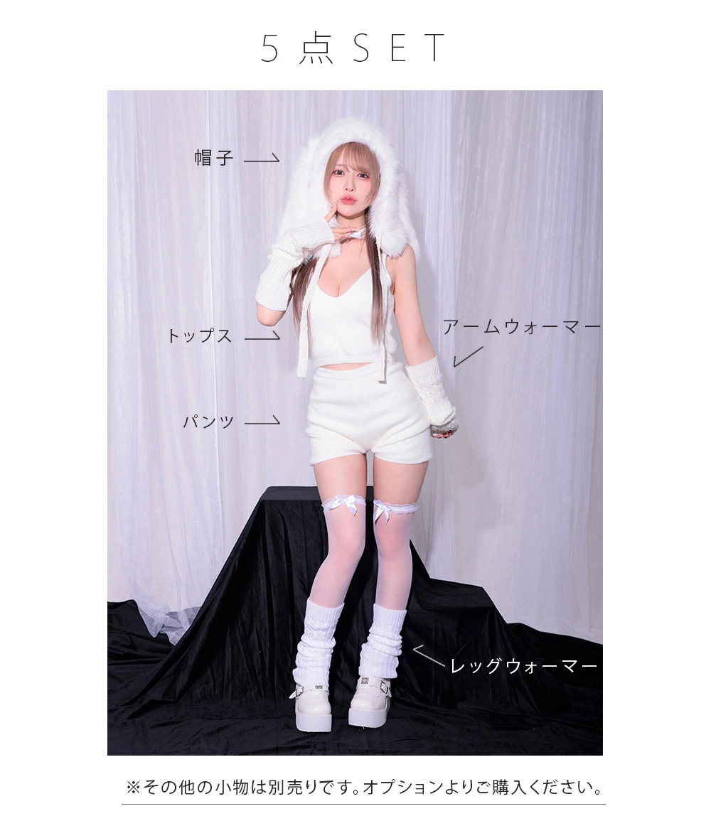 3. 【5点セット】Silky Snow Knit Bunny ホワイト vcsbn-25038