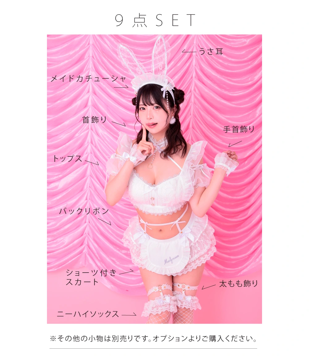 たっぷりのチュールとフリルが特徴のメイドバニーコスランジェリー9点セット♡