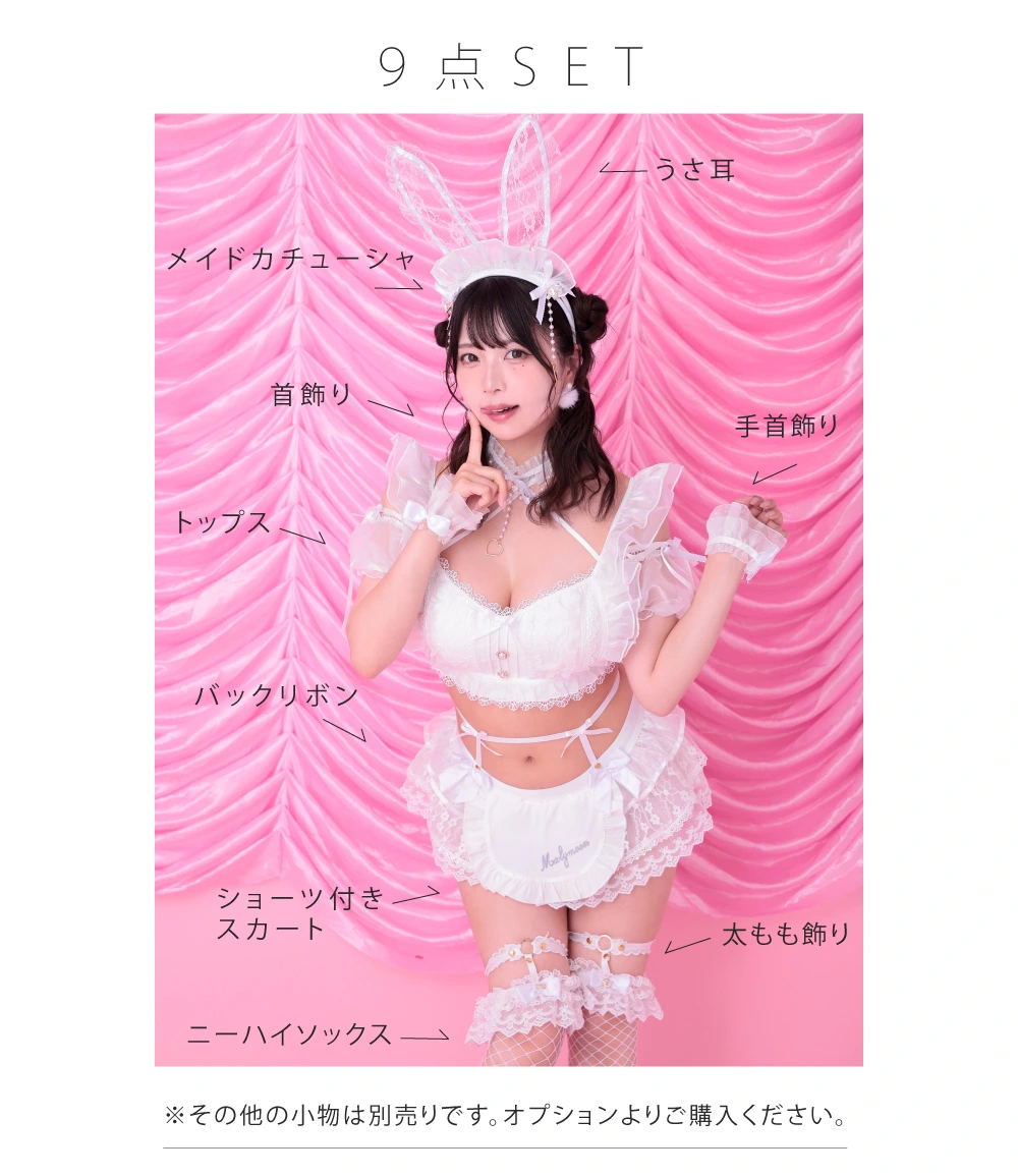 たっぷりのチュールとフリルが特徴のメイドバニーコスランジェリー9点セット♡