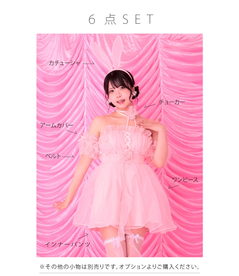 4. 【6点セット】Flower Tulle BUNNY フラワーチュールバニーピンク vcsbn-23341-3