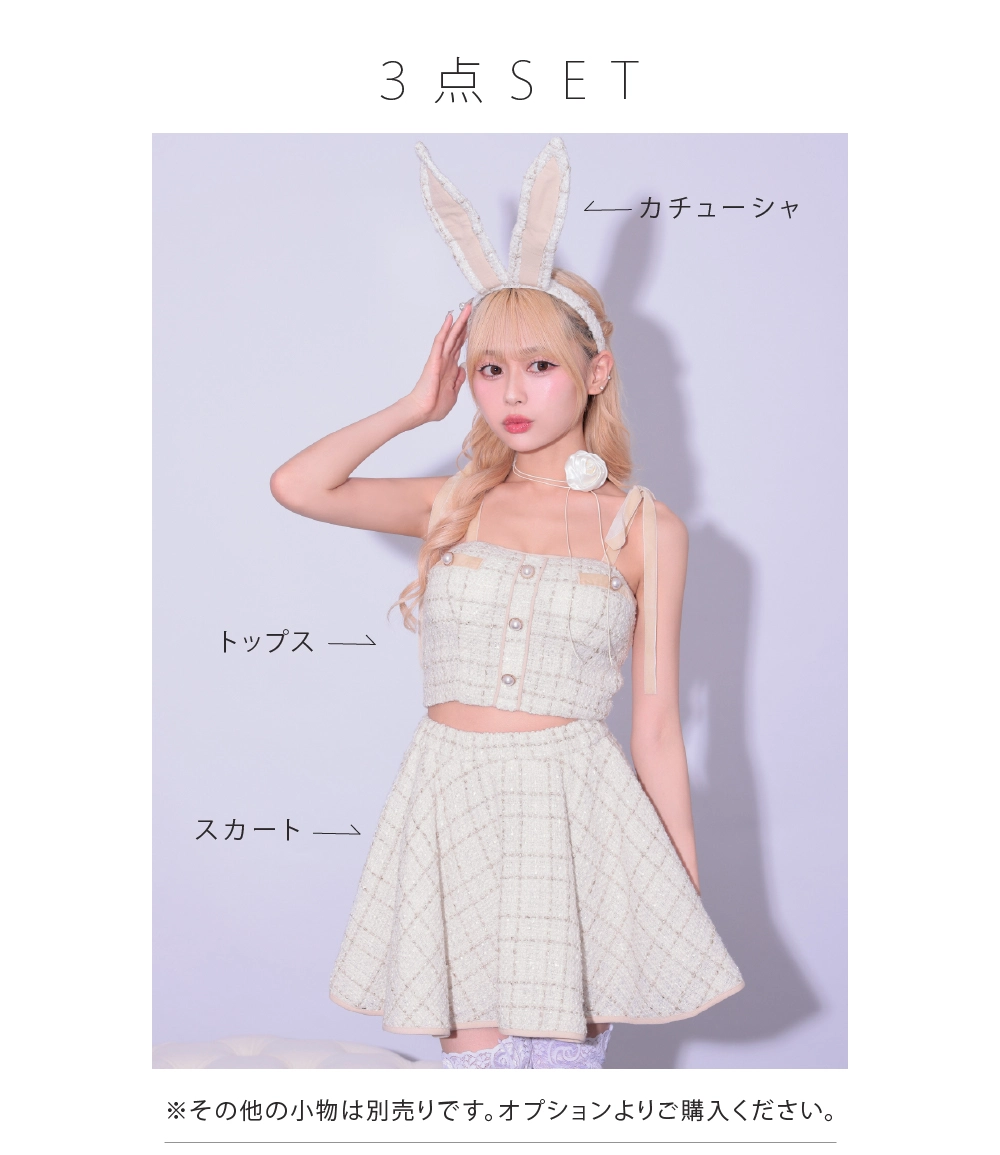 【即日発送】 【3点セット】No.5 ツイードセットアップフレアスカートバニー アイボリー vcsbn-240313-2