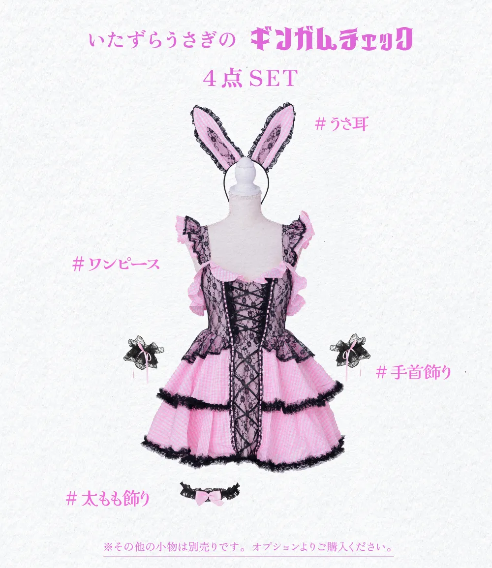 4. 【4点セット】vanityME. × MIYANISHIYAMA いたずらうさぎのギンガムチェックドレス ピンク[ソンアミちゃん着用] vcsbn-250219-1-sn