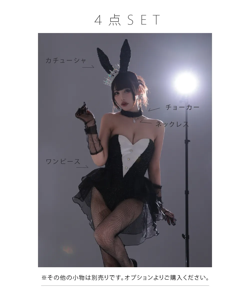 4. 【4点セット】diamond jewelry bunny ダイアモンドジュエリーバニー ハイレグ [ブラック/ホワイト] vcsbn-250240-all