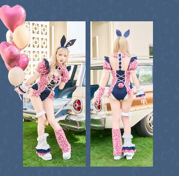ボディースーツ・カチューシャ・髪飾り・アームウォーマー・尻尾・太もも飾り・レッグウォーマー