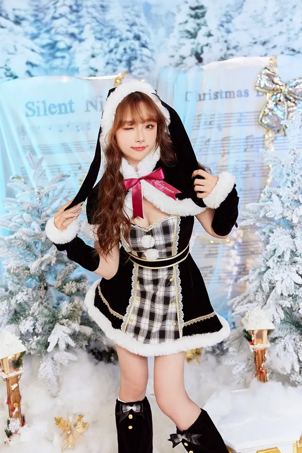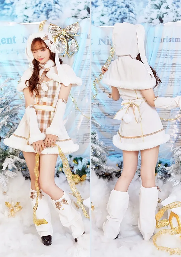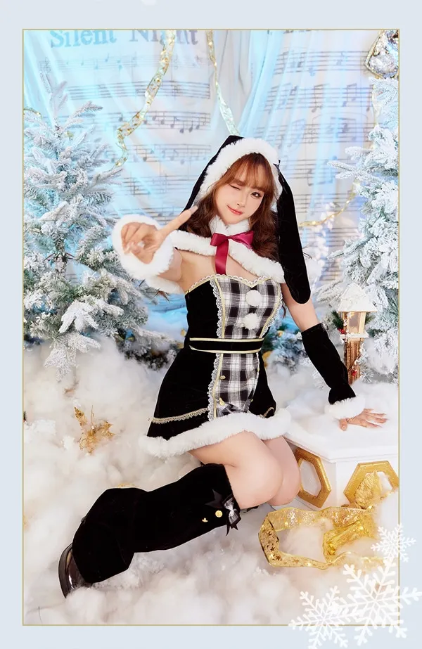たれ耳バニーケープがキュートなチェック柄サンタコスチューム♡