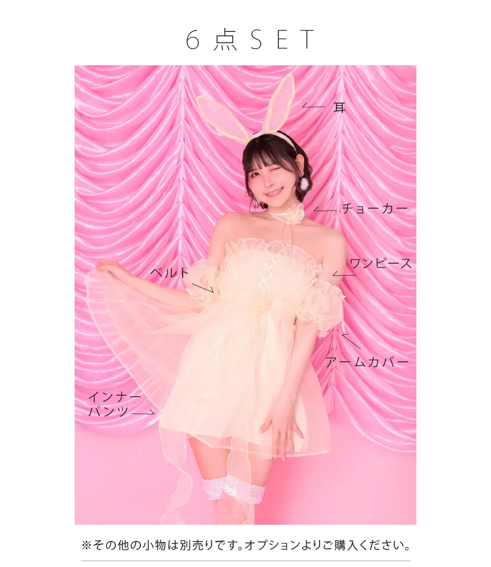 3. 【6点セット】Flower Tulle BUNNY フラワーチュールバニー[アイボリー] vcsbn-23341-am
