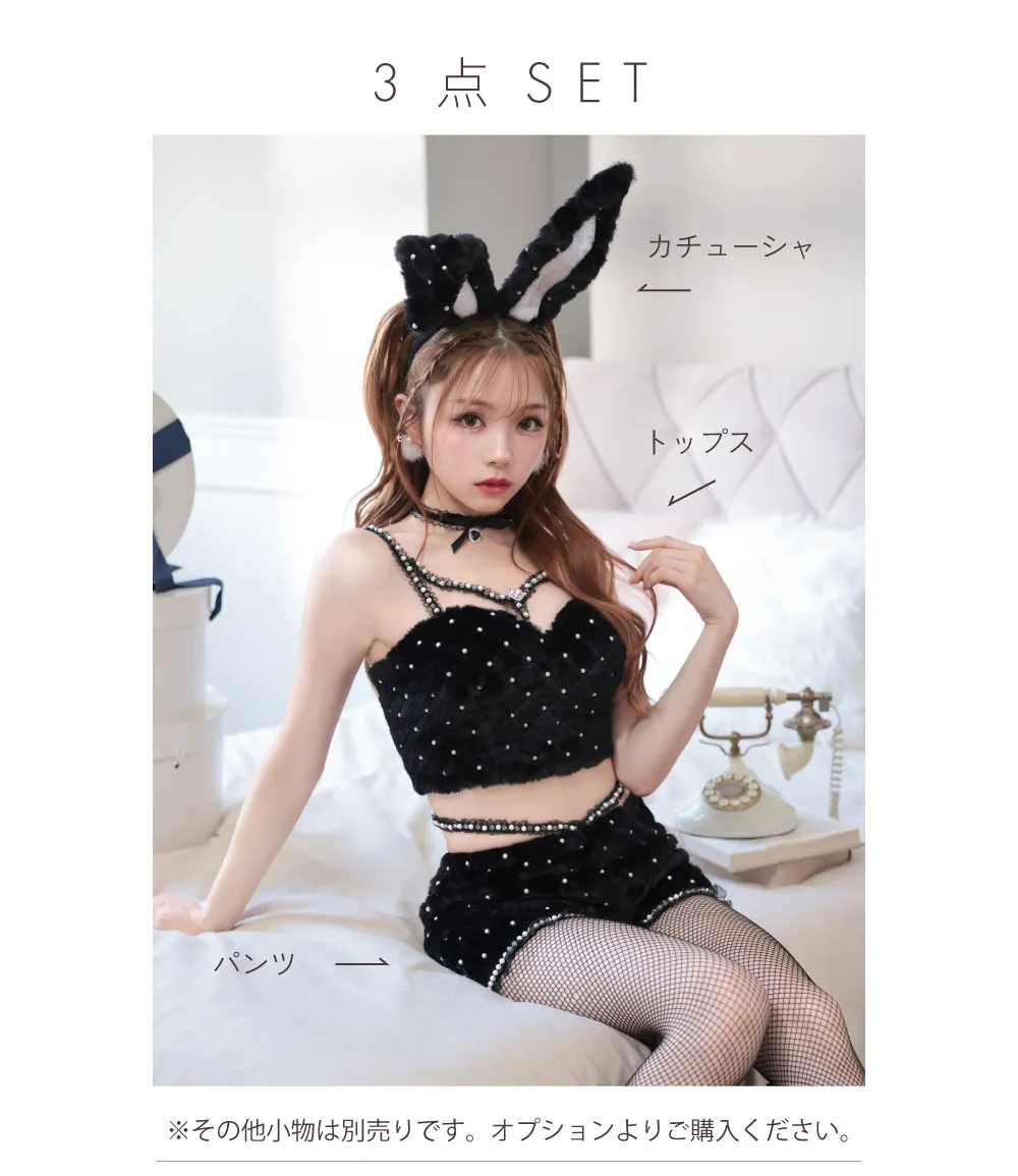 Sサイズ(ファーピアス・チョーカー・バックリボン網タイツ付き)